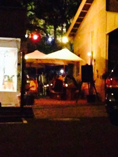 Dinner was in the back yard at various tables composed mostly of pillows on turned over milk crates. The ambiance was lovely with sparkling little white lights, a great local singer, a fire burning and lots of people filling the tables. It is clearly a local event. We were glad to have the opportunity to join into the community even if only for a night.