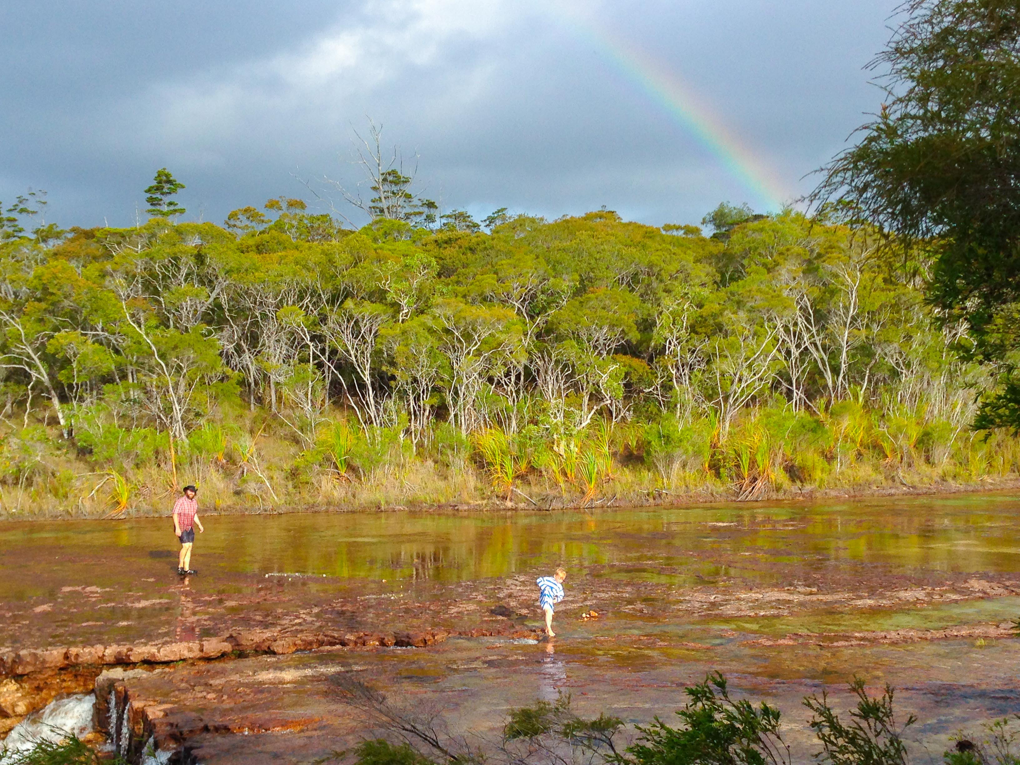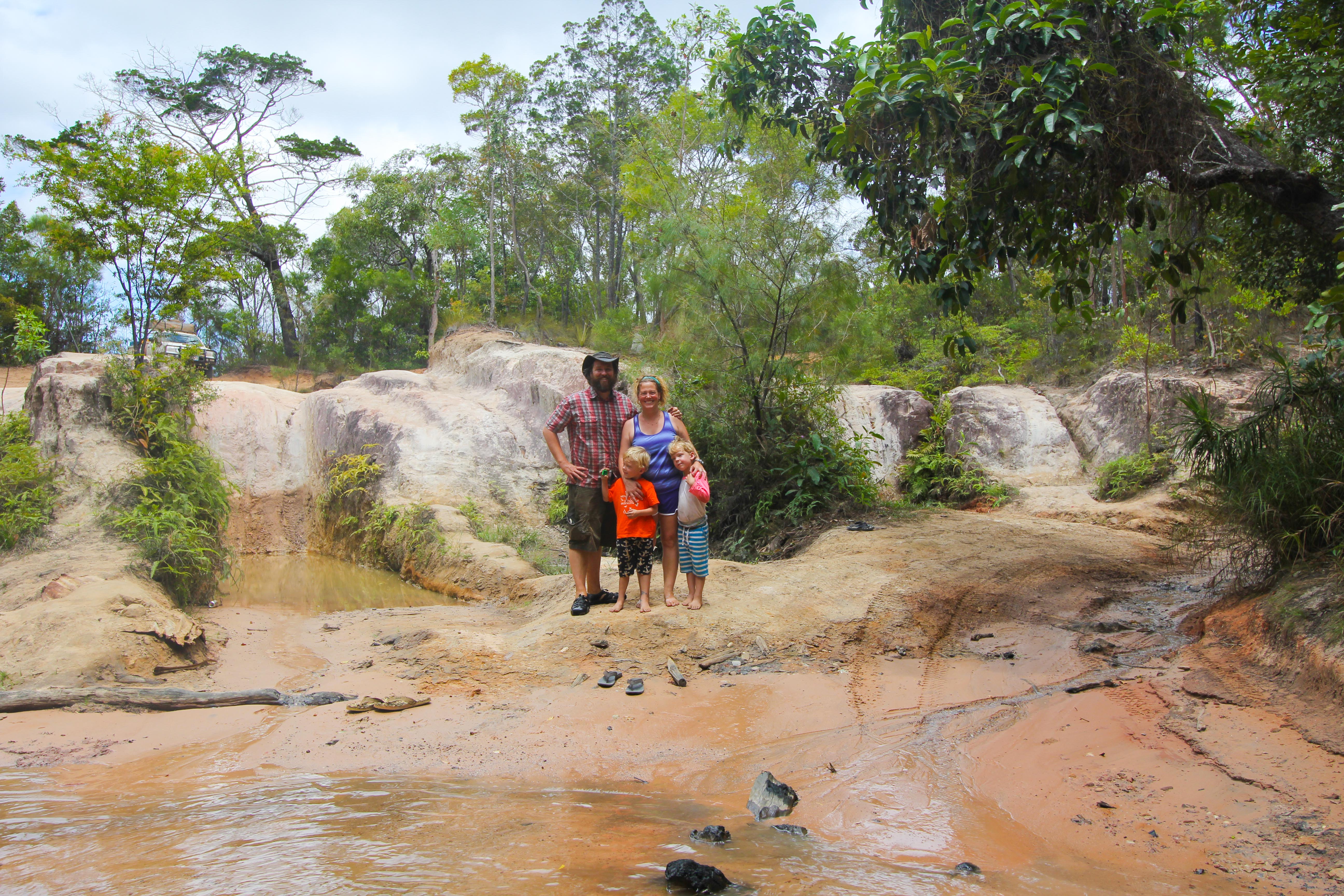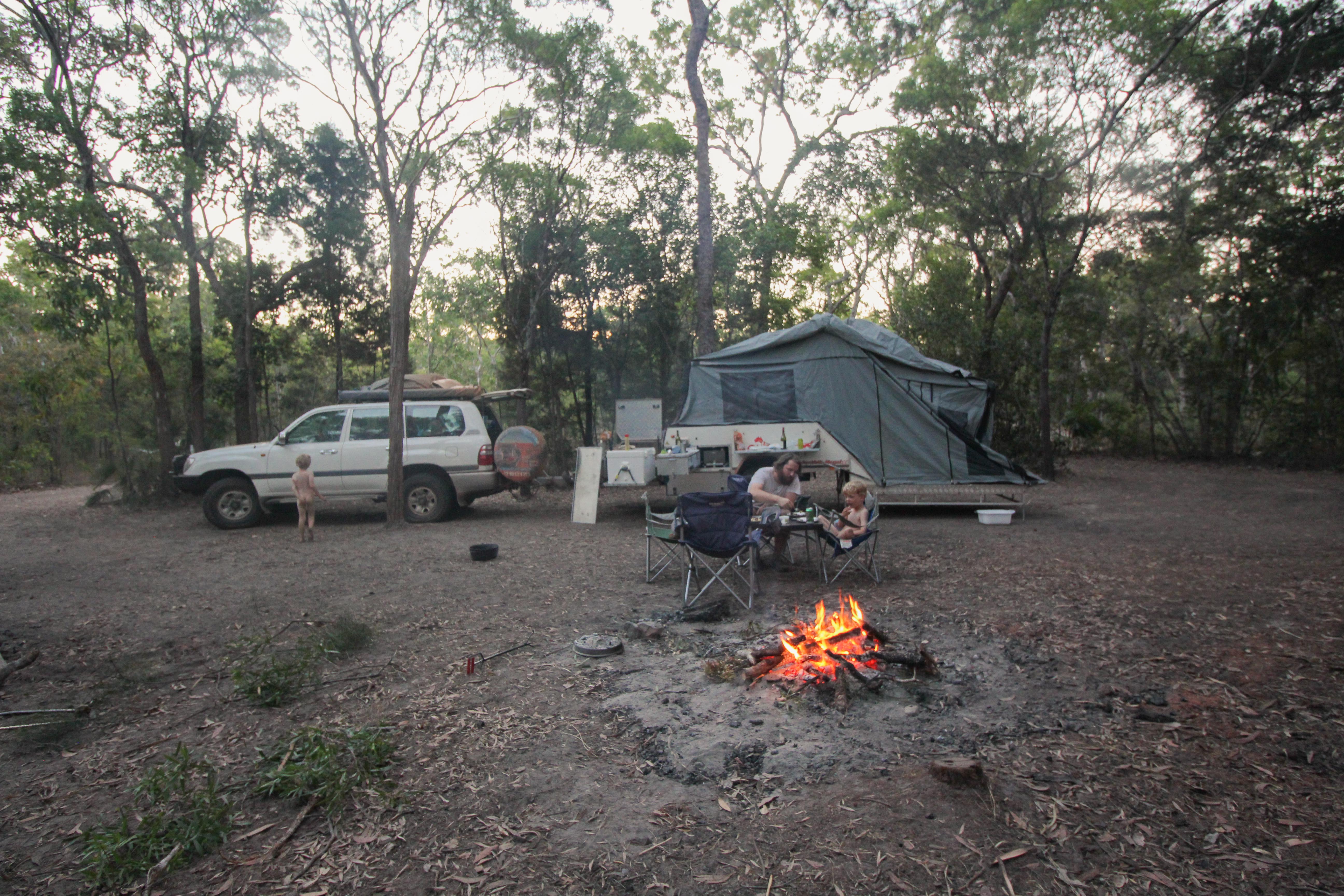 It was in between Bertie Creek and Gunshot that we met our new “mates” Cameron, Leif and Craig- a close group of friends on a fishing, hunting and adventure-seeking holiday. I think they were snickering at our Sydney plates and possibly my bush hat (a “Barmah” made from “squashy kangaroo”), but were then completely surprised when we opened our mouths to discover they had run into a couple of New Yorkers exploring the vast Australian north with five year old twins! I’m guessing we are a pretty rare sight in these parts. We hit it off quickly – Leif won me over with his extensive knowledge of Eddie Vedder and they seemed to enjoy laughing at our butchered pronunciation of Aussie slang. We joined their convoy to Gun Shot, relieved to watch another vehicle tackle the crossing ahead of us.
