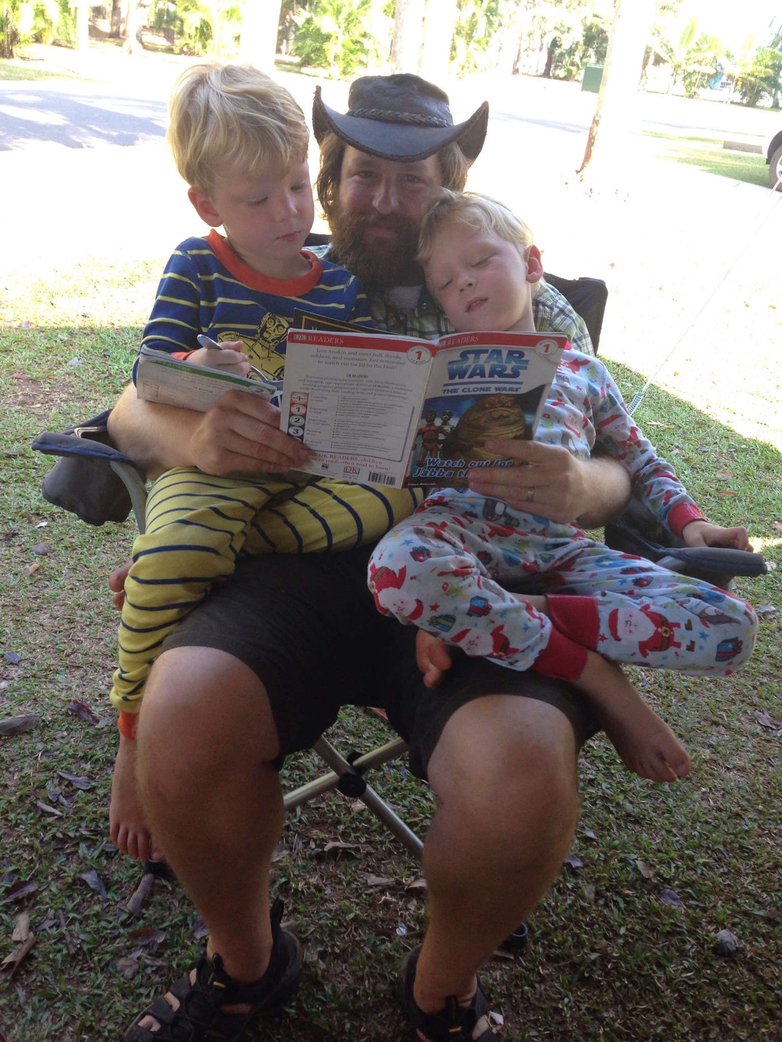 You may ask: What are good books for reading aloud when traveling with your five year-old kids in a camper trailer around Australia? I remember having the Lion the Witch and the Wardrobe read to me at this age, but try as I might, I can’t get the kids interested. Witches are scary, and they have busted me twice trying to trick them by reading about the “Lion the Lady and the Closet.”