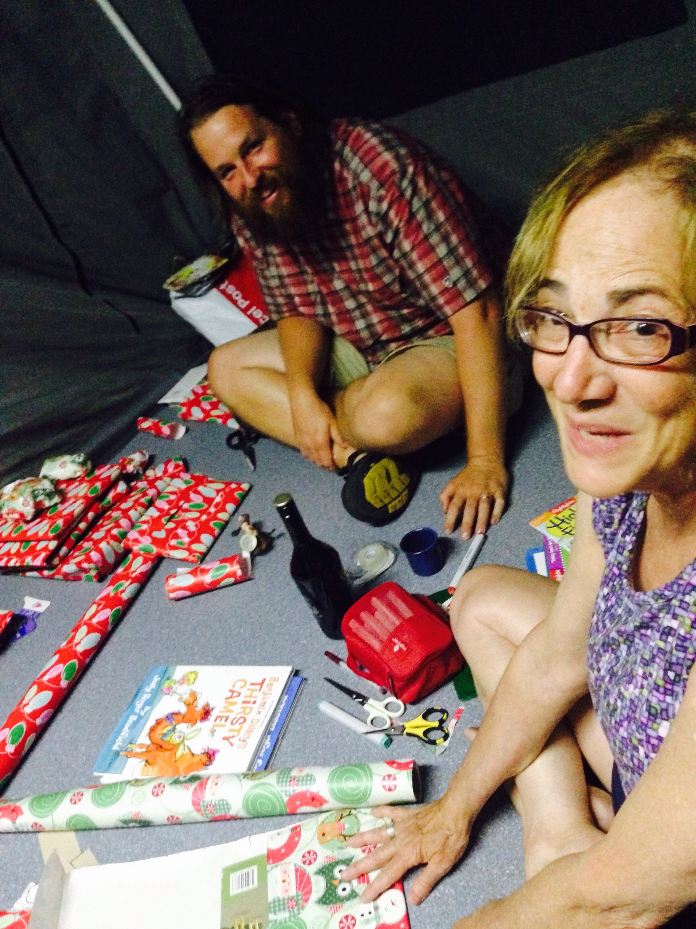 Once the kids were settled in the cabin that my mom had generously rented for us for Christmas, the camper trailer became the ideal wrapping location once the kids were settled into bed on Christmas Eve.