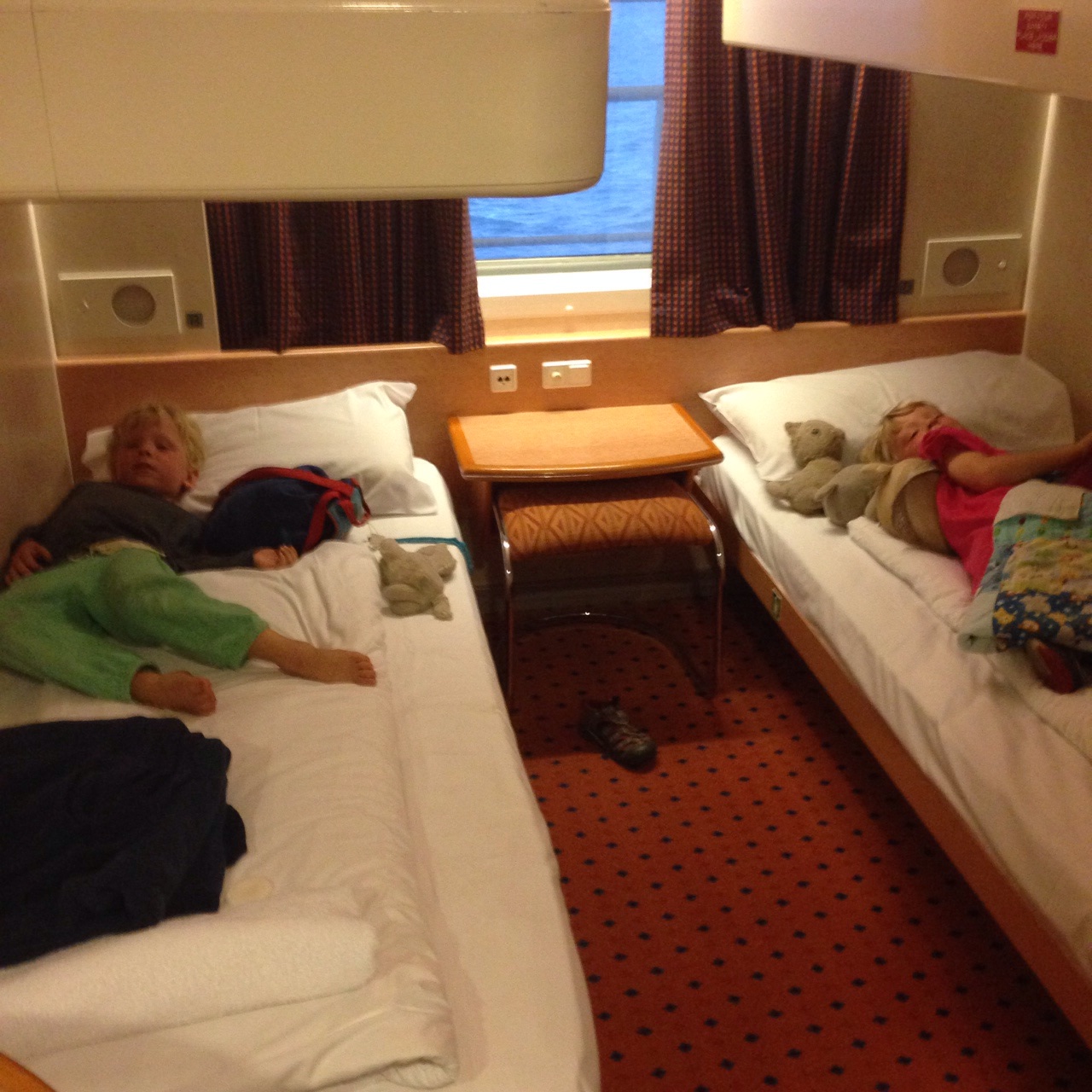 The Spirit was ideal transport, with a restaurant, activities, a pub, and plenty of room to wander about as we left the mainland behind us. We stayed in a very comfortable berth with two sets of bunk beds, kids on bottom, parents on top. Amazingly, despite the excitement over our new adventure, we were all asleep with no issues by ten. The voyage on the Spirit can encounter rough seas, and I have to admit I was a bit concerned I would tumble off my bunk during the night. There was one time I woke up in the early morning hours and found myself looking down at Miranda. I knew this meant trouble, potentially, as she was also in a top bunk, and there was only one explanation why I could be looking down at her — this boat was really rocking! But luckily, no one fell, and we made it back to sleep, and the kids mostly slept through the night as well. I’m guessing if they can fall asleep during a 4WD track down a mountain in the Victorian high country, they can handle some waves! Overall I’m happy to report no major issues or sea sickness for the team!