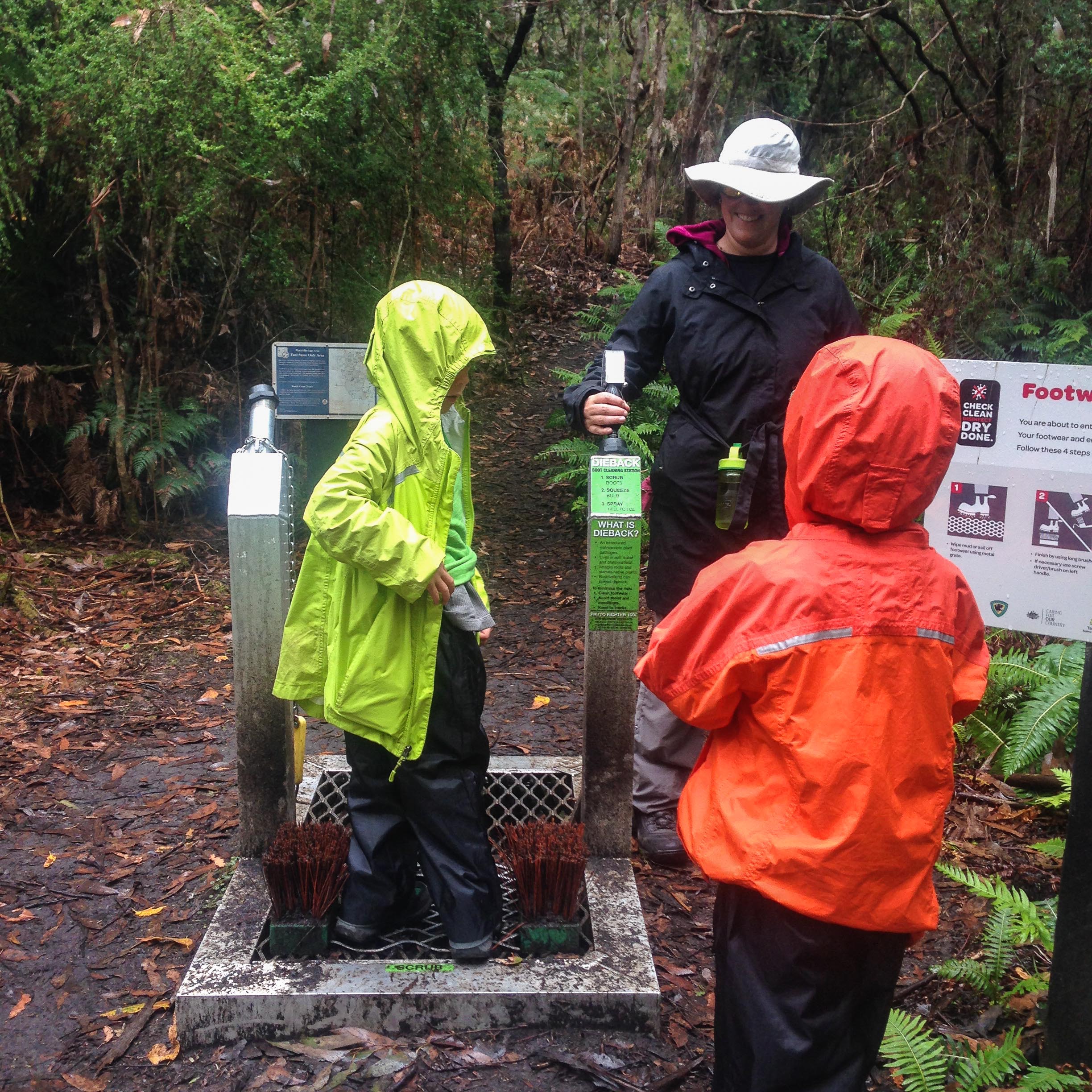 Foot cleaning station. Much of our walk through Southwest National park went through the Tasmanian Wilderness World Heritage area.
