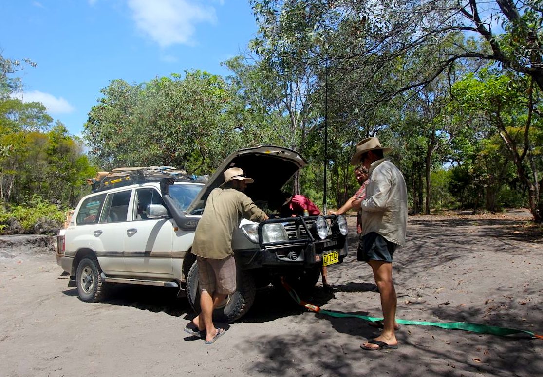 Leif, Cameron and Craig looking under the hood – “she’ll be all right” was the mantra of the day – that green rope is a snatch strap – good to have on hand, but better if you don’t have to use it!